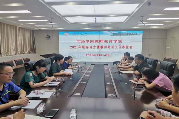 9月14日,金沙威尼斯欢乐人城在格致楼907会议室召开2021年服务地方暨教师培训工作布置会。会议由院长邓琴主持,教院办公室主任韦晓燕、初等教育系主任樊仲光、学前教育系主任黄怡冰等教师参加了会议。