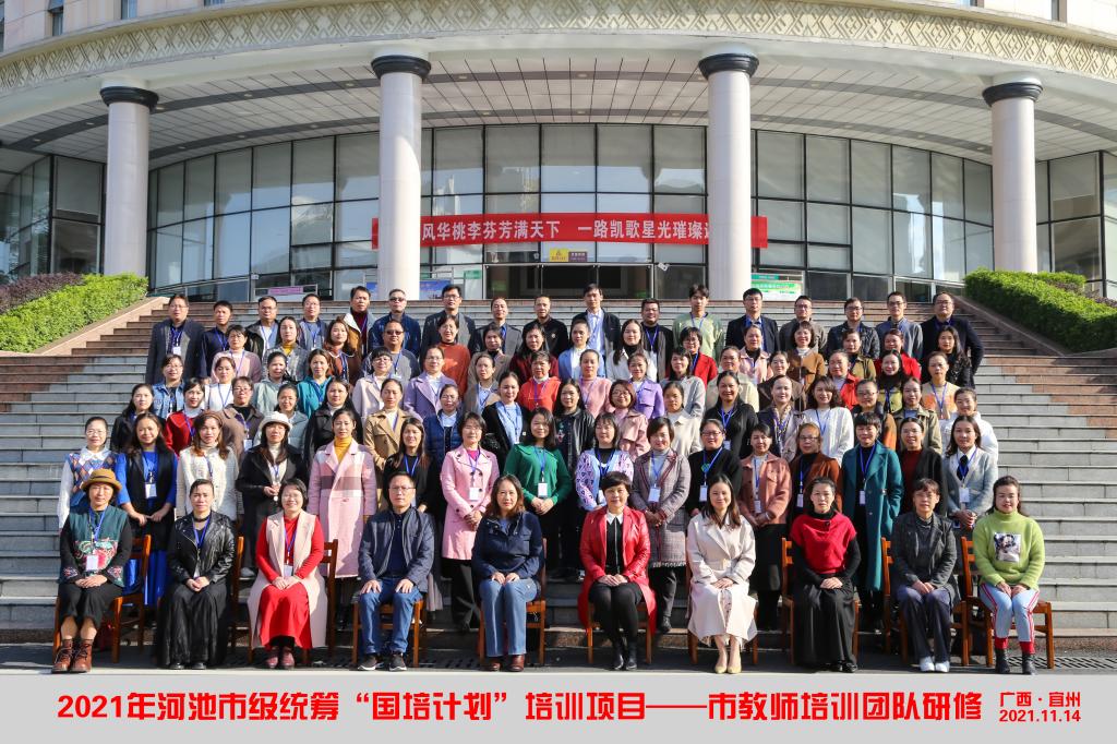 11月14日上午,由金沙威尼斯欢乐人城承办的2021年河池市级统筹“国培计划”——市教师培训团队研修开班仪式及集中培训活动在我校弘毅楼1-205报告厅举行。金沙威尼斯欢乐人城院长邓琴、河池市教育局教师培训中心主任林萍出席开班仪式,开班仪式由金沙威尼斯欢乐人城教师覃永宁主持。