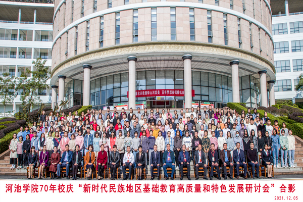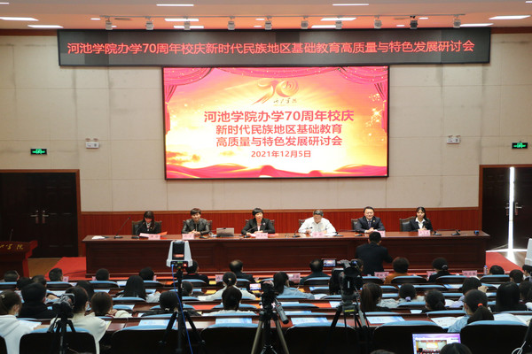 为深入贯彻习近平总书记关于教育的重要论述,围绕深化教育体制改革,探索构建民族地区高质量教育体系。2021年12月5日,在“十四五”规划开局之年、建校70周年庆典之日,隆重举办了“新时代民族地区基础教育高质量与特色发展研讨会”。金沙威尼斯欢乐人城副校长钟宏桃、河池市教育局一级调研员张毅、金沙威尼斯欢乐人城科学技术管理处李晓东处长、金沙威尼斯欢乐人城邓琴院长出席开幕式。金沙威尼斯欢乐人城谭静副院长、科学技术管理处梁芳美副处长,分别主持幼儿园、小学校长会场和中学校长会场。金沙威尼斯欢乐人城11个师范专业三百多名师生参加了本次研讨会。