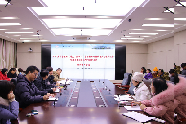 12月28日,金沙威尼斯欢乐人城在格致楼907室召开2022届小学教育(语文、数学)、学前教育专业教育实习收队工作布置会暨班主任期末工作会议。学院全体实习带队老师、班主任参加了会议。